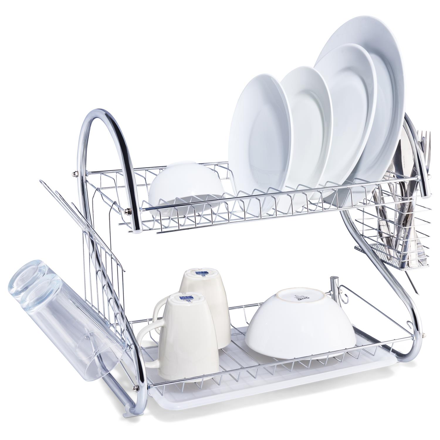 ELEGANT DESIGN: Make your kitchen look stylish with this innovative 2 tier Vinsani Elegance Dish Drainer. Its modern, compact design helps maximise the space in your kitchen with its removable dip tray, tumbler holder, cutlery holder.