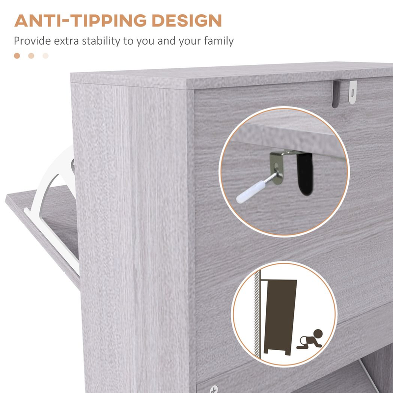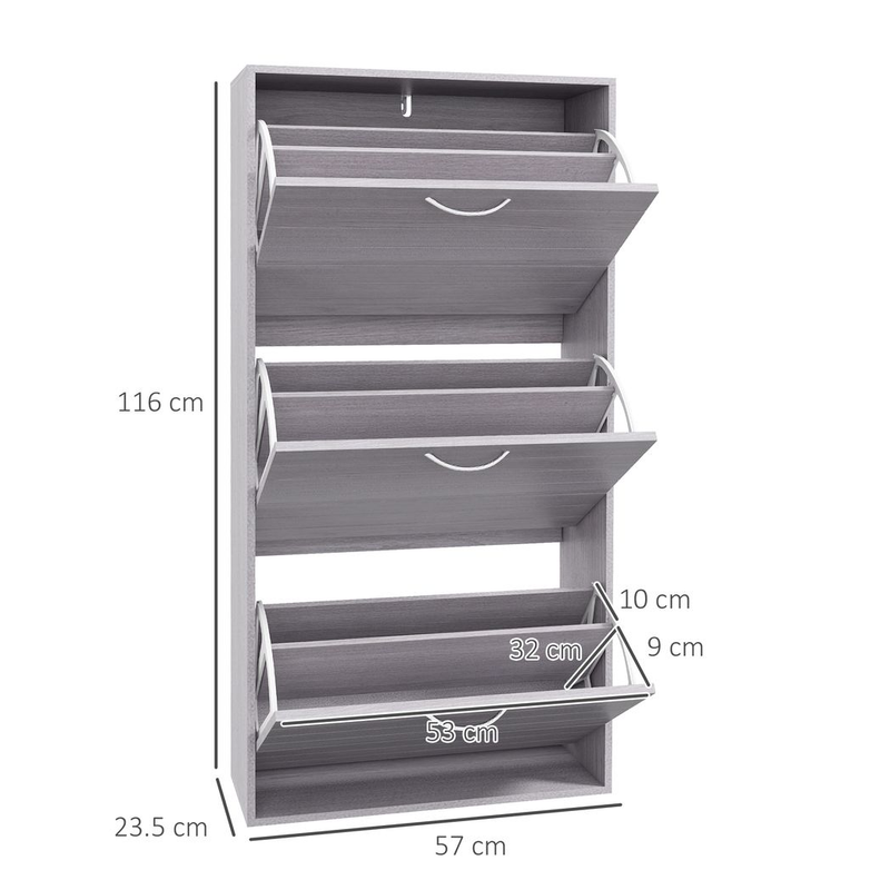 Three flip drawers: easy to access. Holds up to 12 shoe pairs