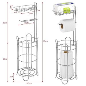 DIMENSIONS: The toilet roll stand measures 18.5 cm x 18 cm x 61 cm making it an ideal fit for all bathroom, small or big.