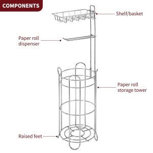ELEGANT DESIGN: This free standing toilet paper holder doesn’t require any mounting and can serve as both decoration and additional storage in your bathroom