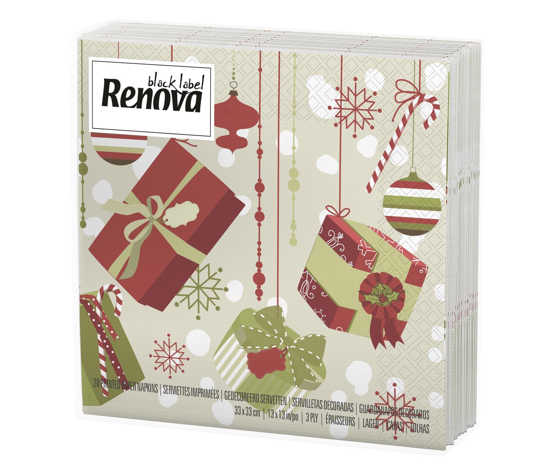 Renova Party Paper Napkins With Stars And Christmas Glitz Design 2 Pack